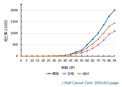 癌症发病率在0-34岁年龄组相对较低,从35-39岁年龄组开始显著增加,在80-84岁年...