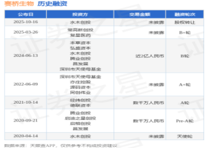 - 【投融资动态】赛桥生物股权转让融资 2025-10-26