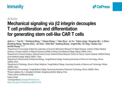 - 专家点评Immunity 黄波团队利用生物机械力信号强势扩增干性CAR-T细胞 2025-08-10