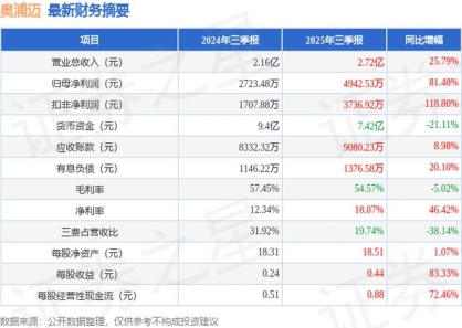 - 奥浦迈(688293)2025年三季报简析:营收净利润同比双双增长 2025-10-31